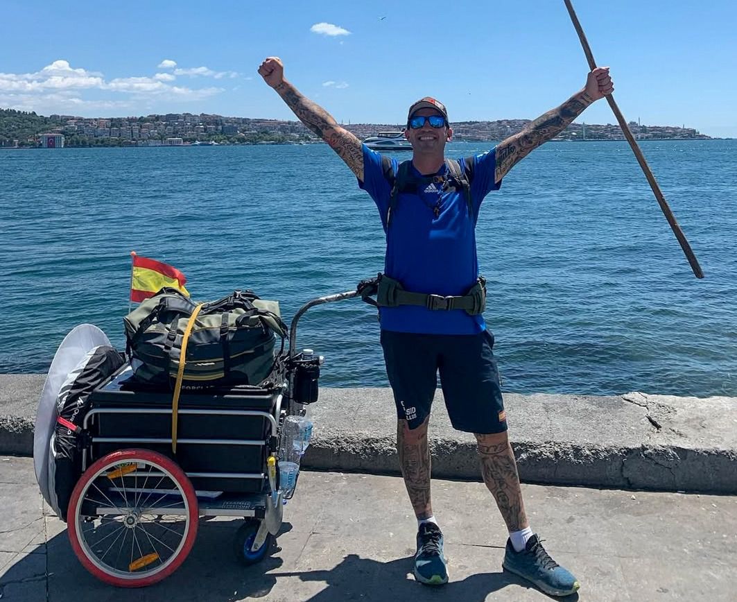Impulsado por esa vivencia, en enero de 2022 decidió llegar a pie al Mundial de Fútbol en Qatar. Recorrió más de 6.500 kilómetros empujando un carrito con sus pertenencias, realizando campañas de sensibilización y recogida de basura durante el trayecto. “Qatar fue la excusa. El Mundial era la excusa para todo el largo viaje y el bonito camino. Simbolizó mucha lucha, esfuerzo físico, mental, noches en soledad, muchos kilómetros”.