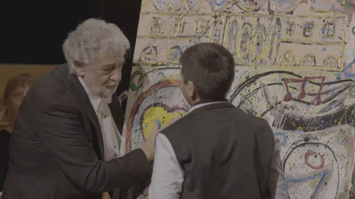 El homenaje expresionista a Plácido Domingo por el joven pintor Juanito con la Fundación Querer