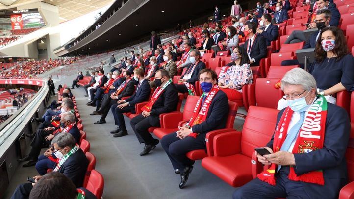 El Rey Felipe VI y el presidente de la República de Portugal, Marcelo Rebelo de Sousa, intercambiaron camisetas de ambas selecciones al final del acto, sorprendiendo la de España, una réplica de principios del siglo XX que llamó la atención de los dirigentes portugueses.