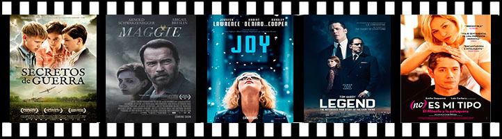 Jennifer Lawrence se vuelve a poner a las órdenes de David O. Russel en su nueva película 'Joy', en la que parcipipa junto a Robert De Niro y Bradley Cooper. También encontramos en los estrenos de este fin de semana a otros rostros conocidos como Tom Hardy en 'Legend' o Arnold Schwarzenegger en 'Maggie'.
