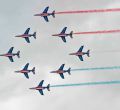 Más de 100 aeronaves españolas y de otros países han participado este sábado en el festival aéreo 'Aire 75', una gran exhibición abierta al público que se ha celebrado en la base de Torrejón de Ardoz para conmemorar el 75 aniversario de la creación del Ejército del Aire con la presencia del Rey Felipe VI y de su padre don Juan Carlos.