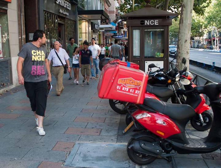 Motos mal aparcadas, las cada vez más numerosas terrazas, contenedores, carteles o bicicletas, que no pueden circular por la acera, son algunos de los obstáculos que tienen que superar los peatones en Madrid.
