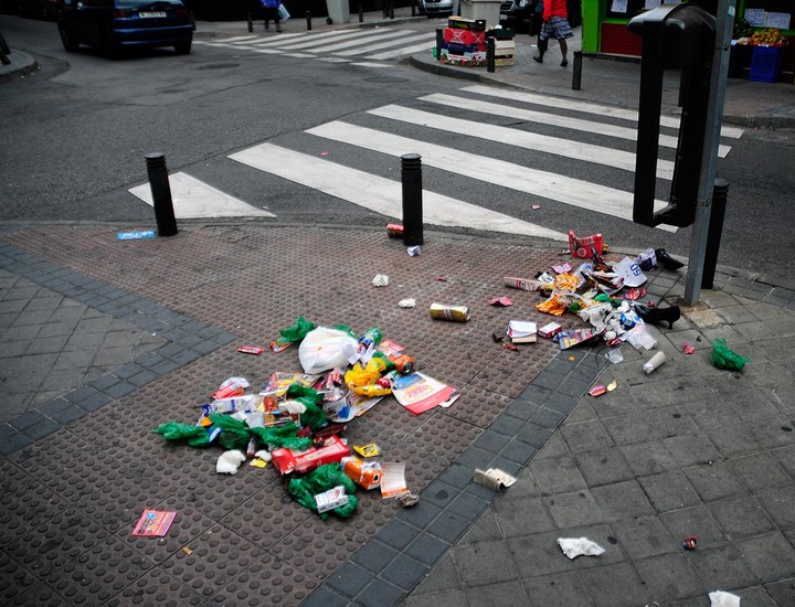 La suciedad se ha convertido en el rasgo característico de las calles y rincones de Madrid en el tercer día de huelga de limpieza. Contenedores desbordados, bolsas que se agolpan en las aceras y todo tipo de desechos domésticos, se han convertido en la 'decoración' de la capital. Cuando se cumple la tercera jornada de paro de los barrenderos y jardineros, no se ha conseguido aún llegar a un acuerdo entre los trabajadores y las empresas que gestionan estos servicios, y el Ayuntamiento de Madrid se ha desvinculado de este conflicto.