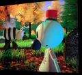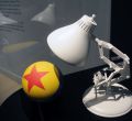 Exposición de Pixar en Caixa-Forum, lámpara y balón iconos de la casa de dibujos animados PIXAR.