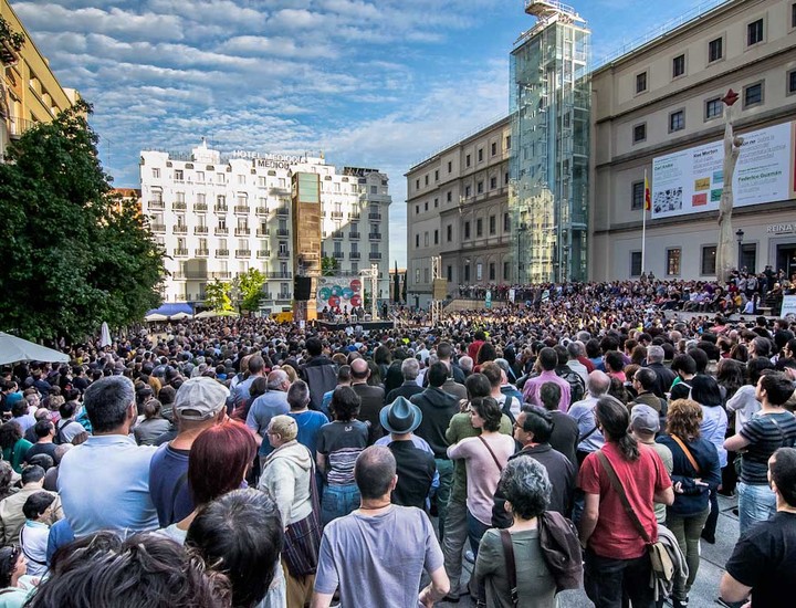 Mitin abarrotado en la plaza del Reina Sofía de las propuestas minicipalistas como Ahora Madrid o Guanyem Barcelona.
