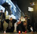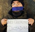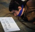 Este jueves, la plataforma ciudadana 'No Somos Delito', realizó una protesta en la Puerta de Sol en contra de la Ley de Seguridad Ciudadana, conocida como 'Ley Mordaza', que fue aprobada este 26 de marzo en el Congreso de los Diputados, con los votos de PP y UPN y el rechazo de toda la oposición. Una veintena de ciudadanos realizaron esta performance en contra de esta ley y portaron lemas como 'Bienvenida dictadura', 'R.I.P. libertad de expresión' o 'No queremos dictadura'.
