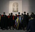 Este martes, la Cuesta de la Vega ha recuperado a la Virgen de la Almudena. Un centenar de personas han acudido a venerar a la Patrona de los madrileños, en un acto presidido por el Cardenal, Rouco Varela, en el que se ha bendecido la nueva imagen y la hornacina que la acogerá a partir de ahora, mientras la tuna rondaba a la Virgen.