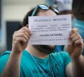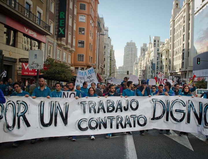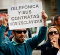 Manifestación de los trabajadores de Dominion, Confica y Ecentis, subcontratas de Movistar, para pedir contratos y salarios dignos.