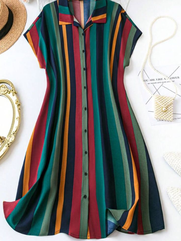 Vestido camisero a rayas Rometta de talla grande, verano, con botones | $10.96