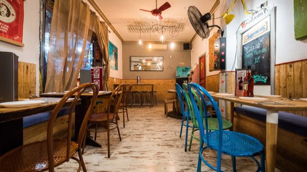 Original, colorido y divertido son los tres adjetivos que le vienen a uno a la mente cuando cruza la puerta del establecimiento o incluso antes, porque al mirar por la cristalera nos encontramos con su mesa estrella que es nada más y nada menos que una bañera. ¿Qué hay mejor para sumergirse de lleno en su concepto gastronómico? La decoración ‘canalla’ a medio camino entre una galería de arte neoyorquina y una tienda de antigüedades, mantiene la vista ocupada en cada detalle hasta que llega la comida… y capta toda la atención. Además, acaban de refrescar la zona de barra para poder tomar cócteles -Margarita es la estrella- o alguna de sus cervezas -española, mexicano o italiana- y terminar el día con una sonrisa.