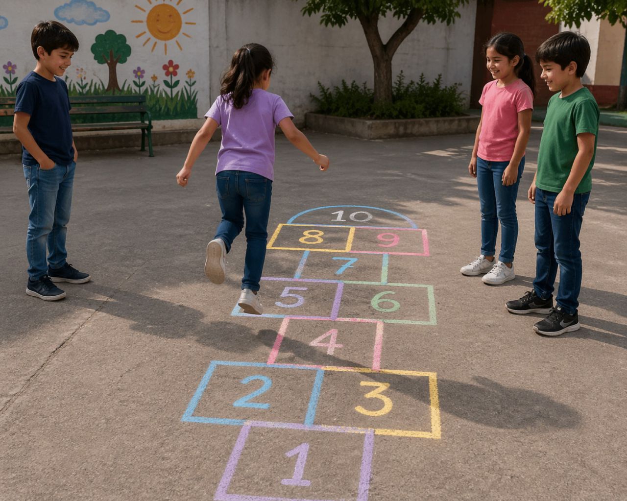 Entre los juegos más queridos estaba la rayuela, dibujada con mano rápida sobre el suelo. Bastaban unas líneas torcidas, una piedrecita elegida con cuidado, y el juego cobraba vida. Saltar de una casilla a otra se convertía en un desafío silencioso, un equilibrio entre concentración y ligereza, mientras los demás niños observaban con atención.