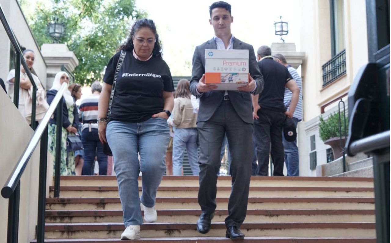 En terrritorio madrileño residen más de 300.000 musulmanes. Solo en la capital, más de 100.000 habitantes profesan esta fe. Las matemáticas aplicadas a la tasa de defunción arrojan una cifra de 1.500 personas fallecidas al año que deben ser enterradas en la Comunidad conforme a los preceptos del Islam. Almas que, sin embargo, son privadas de su derecho a ser inhumadas en un cementerio orientado a La Meca. El único que respeta este requisito en la región, el de Griñón, colmató a finales de 2022. Sin alternativas cercanas, la comunidad islámica se ve empujada a dar sepultura a sus muertos en otras autonomías e incluso a repatriar los cuerpos a países que no sienten como su patria. El movimiento 'Por un entierro digno' ha pedido amparo al Defensor del Pueblo, registrando este lunes 500 firmas para que se desbloquee la solución más viable: cumplir el mandato del Pleno del Ayuntamiento de Madrid y adecuar una parcela en el camposanto de Carabanchel Sur donde poder cumplir su rito.