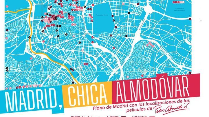 El Ayuntamiento de Madrid ha lanzado el mapa Madrid, chica Almodóvar, publicado por Ocho y Medio Libros de Cine y patrocinado por Madrid Film Office, oficina del audiovisual del Ayuntamiento, que suma la elaboración de este mapa a su línea de acciones de divulgación del patrimonio audiovisual madrileño. El mapa, que recoge 272 localizaciones madrileñas de las 23 películas del director Pedro Almodóvar, se ha diseñado como un objeto de colección en el contexto de la exposición homónima que se celebra en la sala municipal del Centro Cultural Conde Duque hasta el 20 de octubre, y se puede adquirir en la Librería Ocho y Medio, la tienda del Centro de Turismo de la Plaza Mayor y otros puntos de venta.