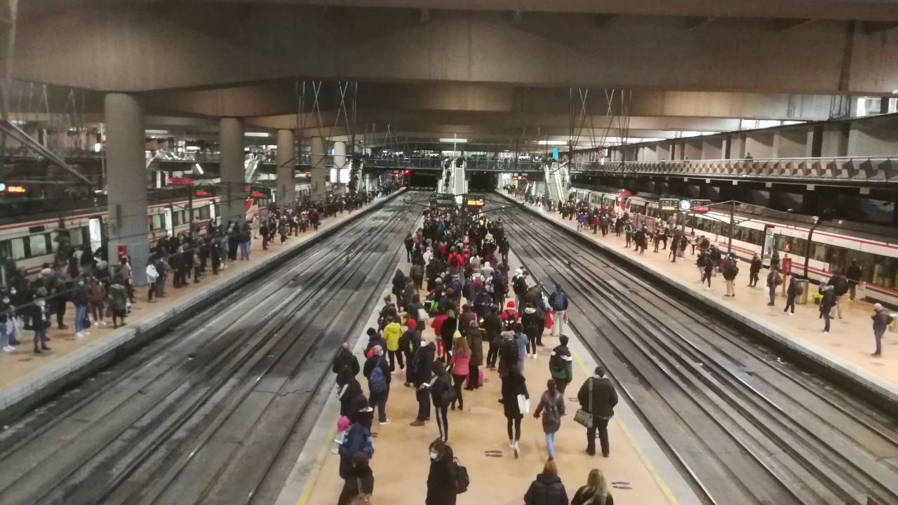 Andenes repletos de viajeros en la estación de Atocha por los retrasos en el Cercanías (Foto: Chema Barroso)