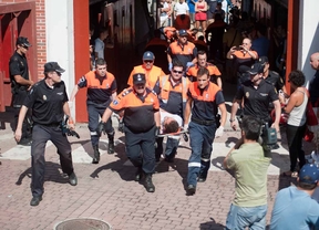 Victoria y Fernández han recorrido los 810 metros de recorrido que tiene la manga del encierro. Un total de 400 personas repartidas entre personal sanitario, Protección Civil, Policía Local y Nacional, pastores y responsables de vallado velan para que esta actividad transcurra con total seguridad. Además, el encierro cuenta con 70 puestos de atención a lo largo de todo el recorrido, 10 ambulancias, 4 UVIS móviles, 20 puestos de socorro, una zona habilitada para el aterrizaje de un helicóptero de emergencias de la Comunidad de Madrid, dos hospitales de campaña, uno del Summa con 10 plazas para atención a "críticos" y otro de Protección Civil con 12 plazas adicionales. A estos hay que añadirles el quirófano de la plaza de toros. Al final del recorrido ambos políticos han asistido a un simulacro que resolvía una situación de tapón o montón humano en el callejón de acceso a la plaza de toros.