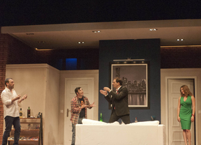 Este es un vehículo para diversión, una comedia disparatada que ya ha sido probada en unas cuantas actuaciones veraniegas fuera de Madrid. Humor para seguir sorteando la crisis o para olvidarse de ella durante un par de horas. Gabriel Olivares se ha convertido un especialista del género, con varios éxitos seguidos, algunos de ellos representándose todavía en teatros madrileños. El reparto de "Una boda feliz" se completa con Francesc Albiol, Celine Tyll y Juan Solo.