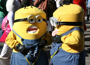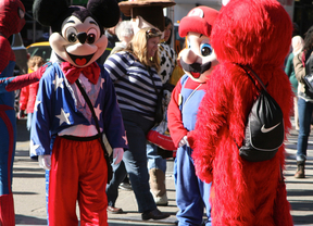 El catalogo de personajes es bastante parecido al madrileño: Mickey y Minnie Mouse, Spiderman, Bob Esponja y Dora la Exploradora, Elmo... Se añaden otros más populares en este continente, como Batman (hay tres o cuatro en la plaza...), Buzz Lightyear y Woody de "Toy story" o la inevitable estatua de la Libertad, recreada con muy pocos medios y bastante descuido.
