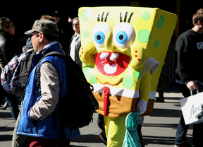 Como pasa en Sol, algunos de los personajes están relativamente bien hechos, pero la mayoría son un poco chapuceros. Además, resultan mucho más pelmas y agresivos. Times Square tiene un tráfico endiablado y por las aceras discurren cada día decenas de miles de personas. Piensen que solamente a la entrada o salida de los más de cuarenta teatros de la zona, circulan por allí unos sesenta mil espectadores. Así que los personajillos tienen que pelearse por cada metro de acera. Cuando captan a un incauto se lo disputan en grupo. Luego son ellos los que disputan por repartir la propina que les han dado. Aunque me ha dado la impresión de que constituyen un grupo perfectamente organizado. Por si fuera poco -y también como en Sol hasta hace poco- la plaza se encuentra en obras. La locura está asegurada.