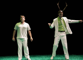 Sergi López y Jorge Picó protagonizan '30/40 Livingstone', un singular espectáculo, cercano al surrealismo. Un hombre contemporáneo, charlatán compulsivo, se encuentra frente a frente con un ser extraño -¿Un ciervo?- con el que mantiene prácticamente un soliloquio. Los dos actores coincidieron en la escuela parisina de Jacques Lecoq y habían colaborado en otro espectáculo, Non solum. Desarrollando dos técnicas interpretativas distintas, la palabra frente al mimo, ambos consiguen un extraño diálogo, sorprendente por los avances en el conocimiento que van logrando los personajes. Puede verse en La Abadía hasta el 8 de diciembre.