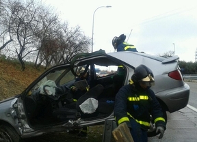 El conductor, que es el que peor parado ha salido, ha quedado atrapado por los pies y ha tenido que ser rescatado por los Bomberos del Ayuntamiento de Madrid, mientras que los hijos han podido salir por su propio pie.