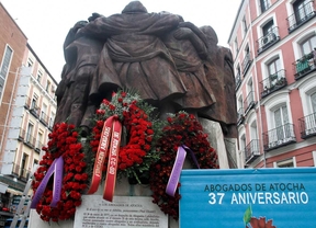 CC.OO y el Partido Comunista Español (PCE) han rendido homenaje este viernes a los llamados Abogados de Atocha, asesinados hace 37 años a manos de un grupo ultraderechista, con una ofrenda floral en el monumento a su recuerdo situado en la plaza madrileña Anton Martín y comprometiéndose "a continuar la lucha por la libertad".