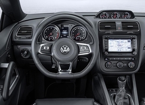 Y si hablamos de la variante más radical, el Scirocco R, en la parte delantera destacan especialmente las tres entradas grandes de aire en negro brillante, los faros bi-xenón de serie, las luces de conducción diurna y los intermitentes de LED. En el lateral resaltan, entre otros, las carcasas de los retrovisores exteriores en cromo mate, los ensanchamientos de los faldones en diseño "R" y las pinzas de freno pintadas en color negro con el logotipo "R". Y en la zaga, siguen formando parte de las insignias "R" los tubos de escape cromados y el alerón del techo más grande, así como las amplias aberturas de salida de aire en el parachoques. También se han diseñado de nuevo las llantas de serie de 18 pulgadas del Scirocco R, y opcionalmente se puede pedir esta llanta de aleación ligera también con una dimensión de 19 pulgadas.