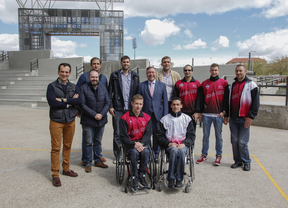 baloncesto Iñaki de Miguel y miembros del equipo de Baloncesto en silla de Ruedas BSR Getafe. Felipe Reyes, a través de la Fundación Incorpora Deportistas Solidarios, colabora con el Ayuntamiento para el impulso del deporte y con esta visita ha mostrado una vez más su apoyo al deporte de Getafe.