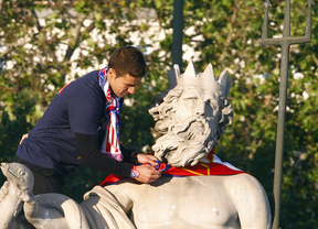 En Neptuno, Carlos Jean tenía enfervorecidos a los hinchas con su música pero al llegar los futbolistas solo se ha escuchado el sonido de las gargantas gritando "Atleti, Atleti". El capitán Gabi ha sido el encargado de vestir a Neptuno de rojiblanco una vez más y de nuevo la afición ha resaltado por encima del resto la figura del Cholo Simeone.