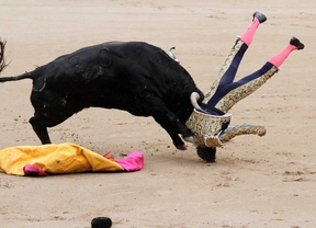 También lo hay de Antonio Nazaré, que sufre un traumatismo en la rodilla derecha con probable lesión de ligamentos, de pronóstico reservado. La tarde empezó mal, ya que David Mora se fue a recibir, de rodillas y a portagayola, al primero de su lote, Deslío', negro listón de 532 kilos, de la ganadería anunciada de 'El Ventorrillo'. El bicorne tomó bien el capotazo con la larga cambiada, pero después se revolvió rápidamente y corneó en repetidas veces al coletudo madrileño, con el que jugaba como un pelele echándole por los aires y corneándole con furia, como podemos ver en la galería de fotos de Kike Rincón.
