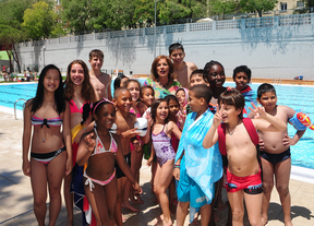 Botella en la piscina de La Concepción rodeada de niños de un campamento