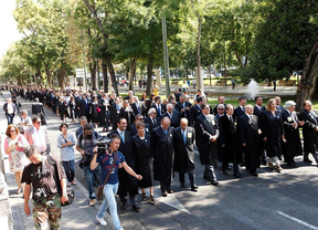 Los decanos y miembros de las Juntas de Gobierno de los 83 colegios de abogados ha recorrido el Paseo de Recoletos, la Plaza de Cibeles y han firmado un manifiesto en defensa de la justicia gratuita que será enviado al Gobierno y al Congreso de los Diputados, donde se tramita el proyecto legislativo.