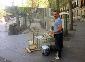 No es habitual ver pintores en las calles de Madrid y menos ver que el objeto