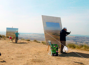 Y ya está pensando en los próximos. "Quiero hacer uno de 7,20 por 3,60 metros del patio de la Casa de Velázquez a la salida de una reunión. Y tengo que terminar el de Alcalá", dice. Y es que, dos días a la semana, se monta en su furgoneta, recoge a Antonio López y se van los dos a un cerro de Alcalá de Henares "que tiene una vista impresionante porque se ve el río Henares, Torrejón y Madrid, muy a lo lejos. Ambos pintamos la misma vista. Él en un cuadro más pequeño y yo uno de 8,40 por 3 metros que tengo que realizar por partes ya que si me dedicara a montarlo cada vez que voy no tendría tiempo para pintar". Aunque estos planes pueden verse afectados por el encargo que acaba de recibir de la Academia de París: le han propuesto plasmar en un gran lienzo su sede junto al Sena. En ese caso, Alberto Martín sustituiría las aceras madrileñas por las parisinas.