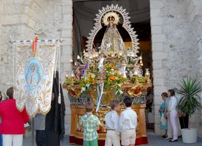 El lunes 8 también es una de las "fechas centrales de los festejos", cuenta Jesús Moreno. Se celebra la misa -a las 12 horas en la parroquia de Nuestra Señora de la Asunción- y la procesión de Nuestra Señora del Rosario -a las 19.45 horas-, patrona de la localidad. El programa musical del día de la Virgen correrá a cargo de la unidad de música de la Guardia Civil en la plaza de la Constitución a las 22.45 horas. Ese mismo ese día por la noche, una traca de fuegos artificiales despedirá las fiestas.