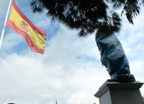 Este martes comenzó la instalación de la estatua de Blas de Lezo en los Jardines del Descubrimiento, junto a la plaza de Colón.