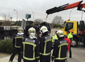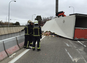 El conductor ha conseguido salir por su propio pie del camión y no ha habido más heridos ni vehículos afectados. Hasta el lugar han acudido los Bomberos de la Comunidad de Madrid, que han supervisado con una grúa la retirada del vehículo.