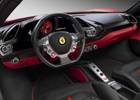 En el interior, la perfecta integración de los nuevos grupos de controles, los orificios de ventilación en ángulo y el panel de instrumentos agudiza la sensación de una cabina completamente concebida en torno al conductor. La usabilidad fue un concepto clave en el diseño, lo que se tradujo en un ambiente eminentemente deportivo que en modo alguno renuncia al confort. Para ello hay multitud de elementos clásicos estilo Ferrari también como la clara división entre salpicadero y túnel, el volante multifuncional, los mandos de control de modo en el puente y los asientos envolventes. Los gráficos e interfaz de la pantalla de infoentretenimiento han sido también completamente rediseñados mientras que el diseño de la nueva llave del Ferrari 488 GTB se inspira en el bloque de cilindros del coche y permite el arranque sin llave.