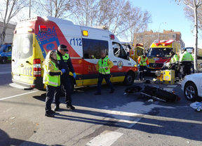 Un motorista de 36 años se encuentra herido muy grave tras colisionar en la calle Comercio con un taxi que estaba haciendo, al parecer, un cambio de sentido y ha invadido el carril contrario, ha informado un portavoz de Emergencias Madrid.