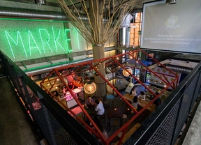 El proyecto surgió hace casi un año de la mano de Grupo Nivel 29, una empresa promotora que lleva funcionando desde hace 28 años. Juan Carlos recuerda que levantaron este edificio "en un solar vacío en 2012 en medio de la crisis". Comenzaron con unos apartamentos turísticos y un aparcamiento -robotizado y con 85 plazas-y lo más reciente, la implantación del mercado. Han apostado por una estética de corte modernista con materiales "que no pasan en el tiempo". Vigas metálicas en el techo y tuberías que se dejan ver a simple vista, lámparas antiguas y materiales en bruto como el ladrillo visto, la madera sin tratar, el hormigón y el acero. Todo acompañado con un enorme neón que domina el espacio completo y abierto al exterior a través de grandes ventanales.