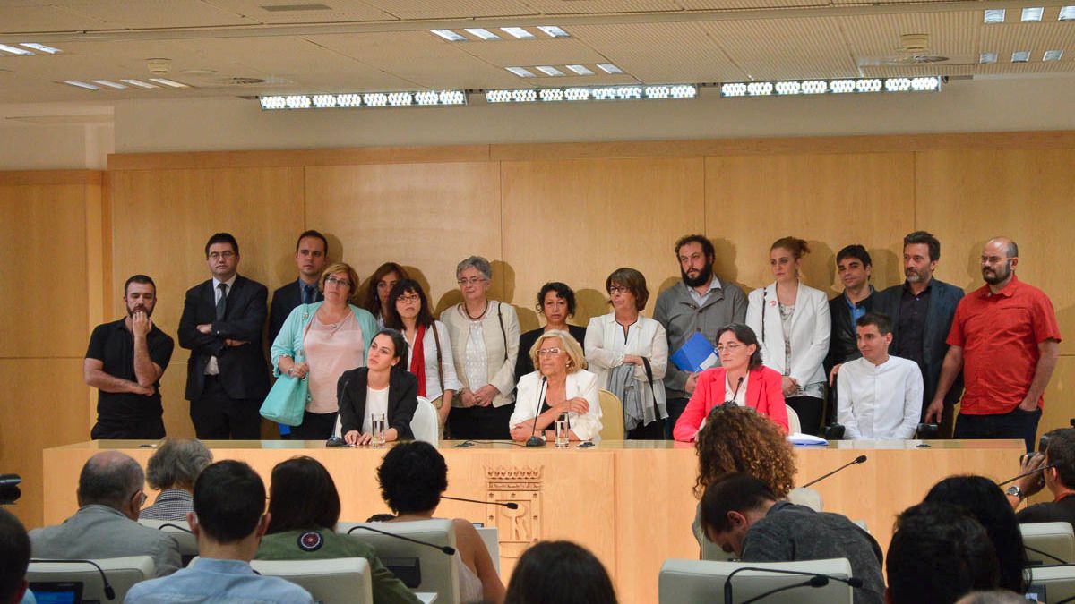 Además, Ahora Madrid se compromete "a hacer lo posible por desarrollar con la ciudadanía cuantas iniciativas se lancen desde el Gobierno municipal o desde el resto de partidos políticos representados en el Ayuntamiento para paliar los efectos de una Ley que nunca debió existir".