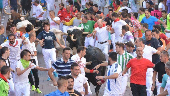 El encierro de este domingo, uno de los más numerosos en asistencia de público, ha durado un minuto y 54 segundos.