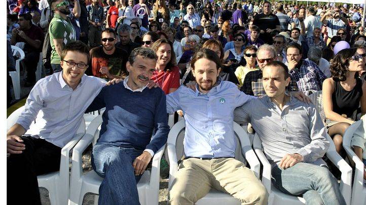 Íñigo Errejón, José Manuel López, Pablo Iglesias y Luis Alegre, en el cierre de campaña de Podemos (Foto: Carlos Maisanaba)