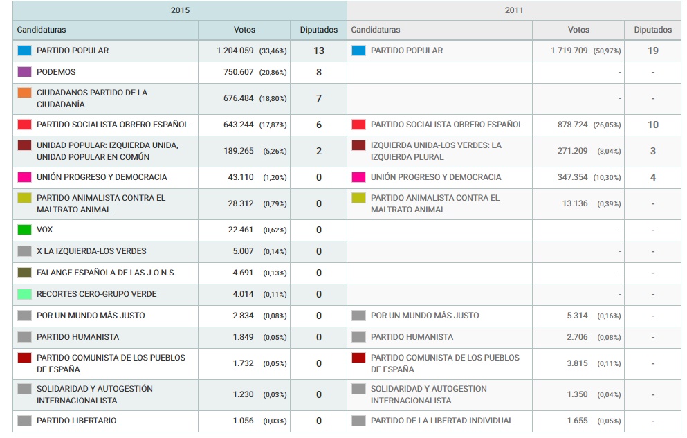 Y es que, aquel estéril 20-D, la Comunidad ya fue escenario del tan traído 'sorpasso' al PSOE por la izquierda. Los de Pablo Iglesias celebraron como una victoria sus más de 750.000 votos, muchos obtenidos en el llamado 'cinturón rojo'. Por su parte, los socialistas, envueltos también en un nuevo capítulo de enfrentamientos internos entre el ala representado por la nueva secretaria general madrileña, Sara Hernández, fiel a Pedro Sánchez, y el destituido Antonio Miguel Carmona, vieron cómo caían a la cuarta posición perdiendo hasta cuatro asientos en el Congreso y dejando paso al ascenso de la otra formación emergente de la noche: Ciudadanos.