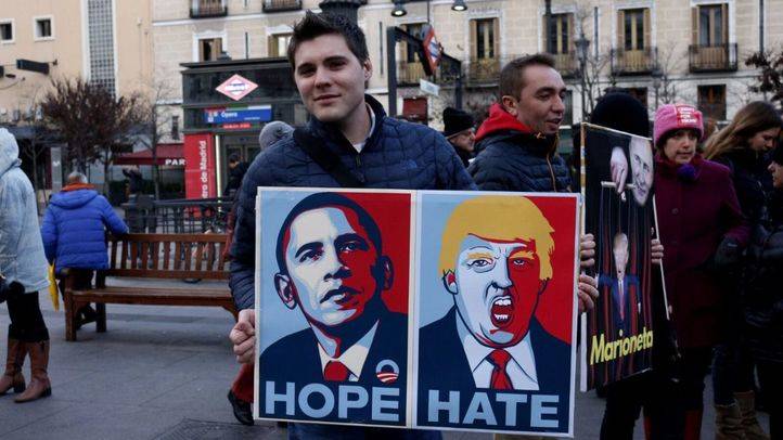 Pero no sólo en su país ciudadanos han salido a la calle para protestar contra el "racismo" y la "intolerancia" que profesa, según sus adversarios, Donald Trump. En Ópera, en la Plaza de Isabel II, centenares de personas, en su mayoría norteamericanos, también han protestado contra el exempresario mientras éste tomaba posesión de su nuevo cargo. En las pancartas se podían leer lemas como "Unidos contra Trump", "We are America", "We matter", o "Stop Trump".