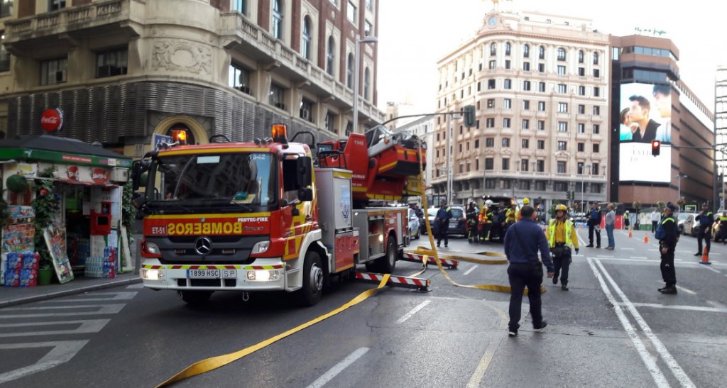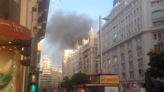 La calle Gran Vía ha sido cortada este lunes por un incendio se ha desatado en la azotea de un edificio en el número 48, que no ha dejado heridos. Antes del medio día quedaba abierto por completo el tráfico en la arteria madrileña.