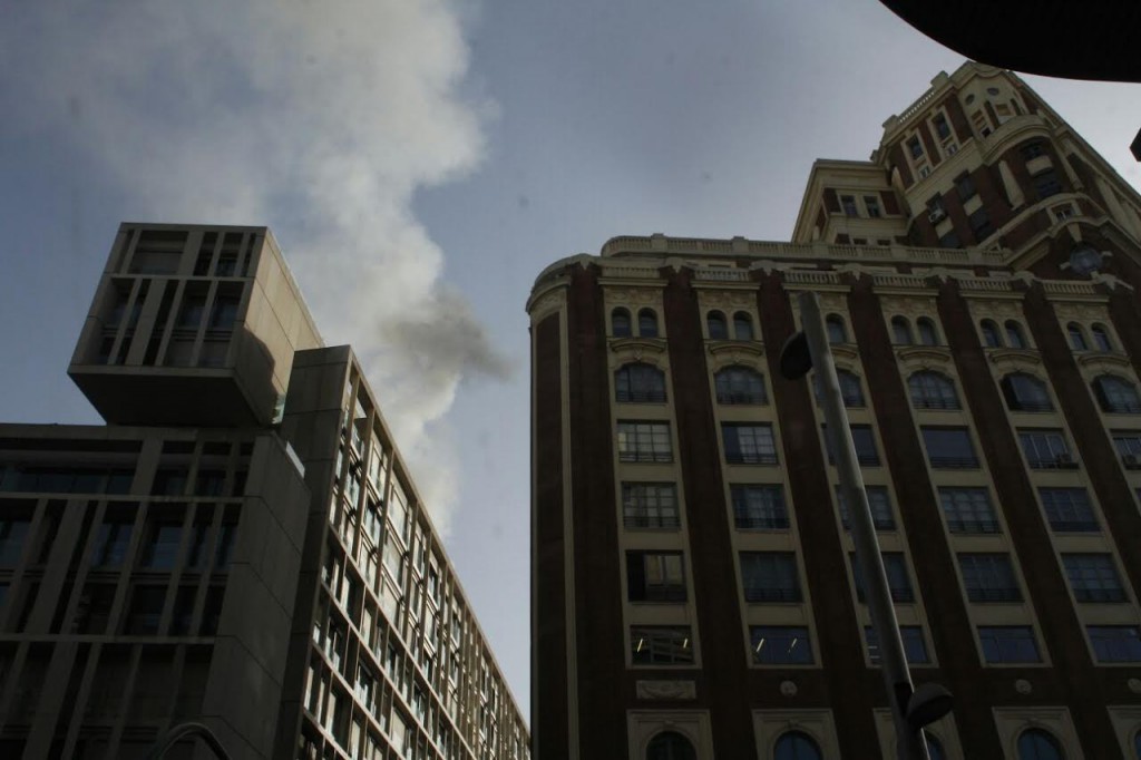 El fuego, que ha quemado el suelo de teka y los sistemas de refrigeración de la azotea del edificio, ha provocado una gran columna de humo que se podía ver desde distintos puntos de la capital.