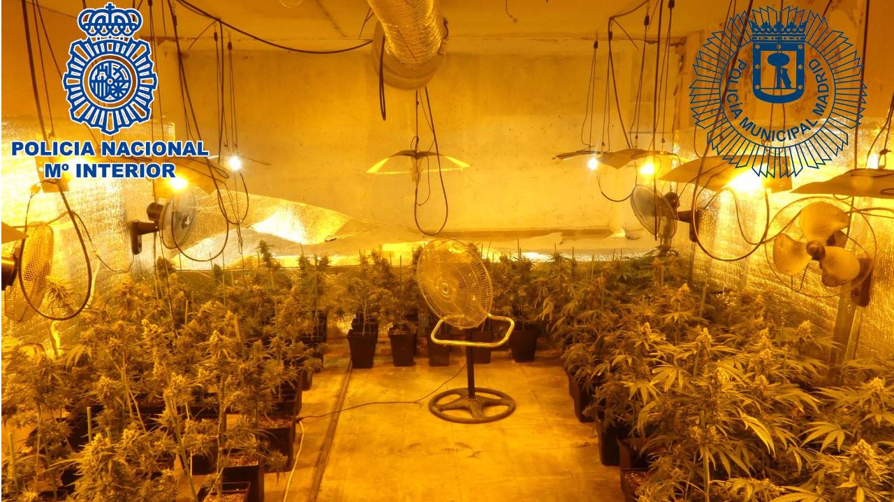 Agentes de la Policía Nacional y de la Policía Municipal de Madrid han desmantelado un local tipo almacén el cual estaba perfectamente preparado para el cultivo y producción de sustancias estupefacientes, concretamente marihuana. En su interior se hallaban 150 plantas en diferentes fases de crecimiento.