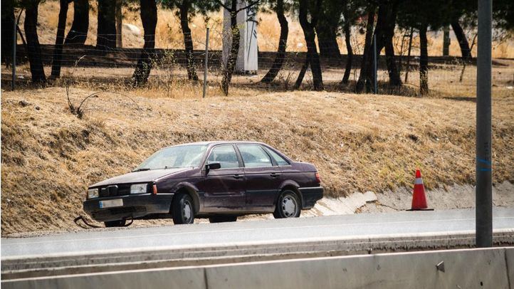 Coche abandonado por cundas en la A-3. (Foto: Pedro García)