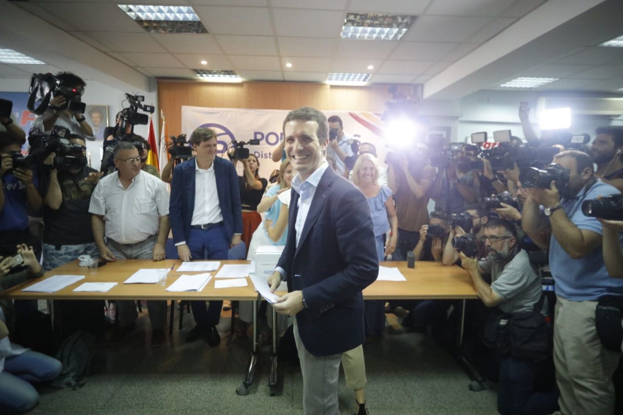 Casado, que ha votado media hora antes que Soraya Sáenz de Santamaría en la misma sede del madrileño distrito de Salamanca acompañado de su mujer, Isabel Torres, ha afirmado que tiene "muy buenas sensaciones" sobre sus posibilidades en las votaciones que se celebran hoy, en las que votarán 66.706 afiliados y se ha mostrado convencido de que el partido saldrá "unido" de este proceso. Los dos aspirantes con más apoyos, pasarán a segunda vuelta, que tendrá lugar en el cónclave previsto para los días 20 y 21 de julio en Madrid.