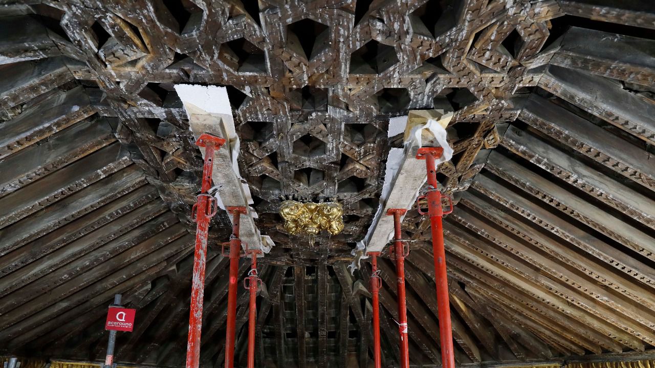 La Comunidad de Madrid está restaurando el artesonado del siglo XV hallado tras el falso techo de la iglesia de Santa María la Blanca, situada en el barrio de Canillejas, que se convertirá en el ejemplo de carpintería de lazo más relevante de la ciudad de Madrid, ha destacado el consejero de Cultura, Turismo y Deportes, Jaime de los Santos, en su visita a la parroquia esta mañana.